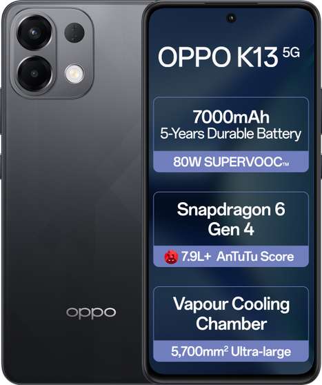 OPPO K13 5G with 7000mAh and 80W SUPERVOOC Charger In-The-Box (Prism Black, 128 GB) (8 GB RAM)